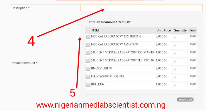 - Amount item List. Tick as appropriate, tick if you’re MLT or MLA as the case may be, and also select Bulletin. All the amounts will reflect the above box. NB: If you are paying for 2 years say 2017 and 2018 you have to input 2 under the quantity and likewise for the bulletin.